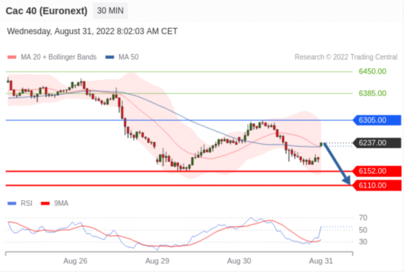 交易策略: 在 6305.00 之下,看跌,目标价位为 6152.00 ,然后为 6110.00 。