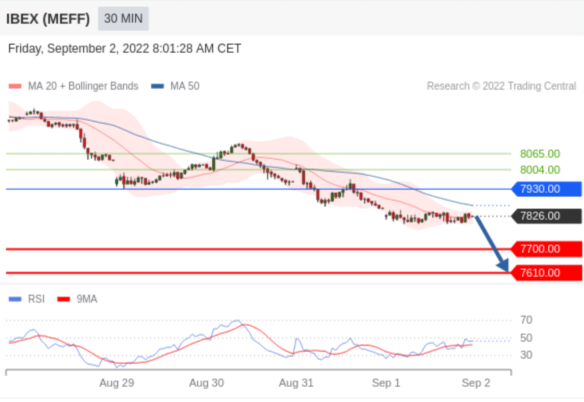 交易策略: 在 7930.00 之下,看跌,目标价位为 7700.00 ,然后为 7610.00 。