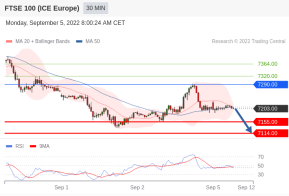 交易策略: 在 7290.00 之下,看跌,目标价位为 7155.00 ,然后为 7114.00 。