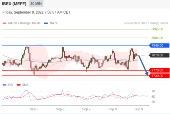 交易策略: 在 7949.00 之下,看跌,目标价位为 7770.00 ,然后为 7730.00 。