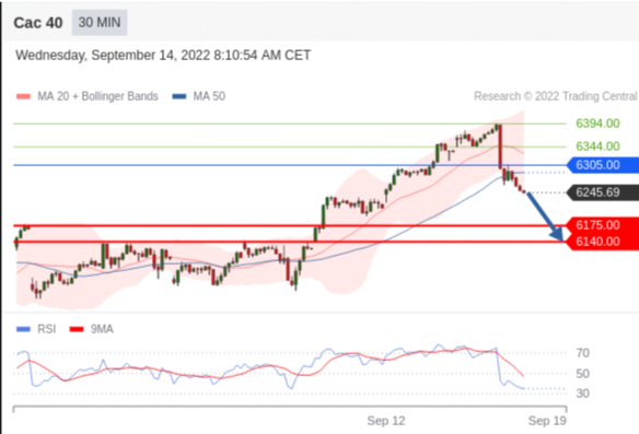 交易策略: 在 6305.00 之下,看跌,目标价位为 6175.00 ,然后为 6140.00 。