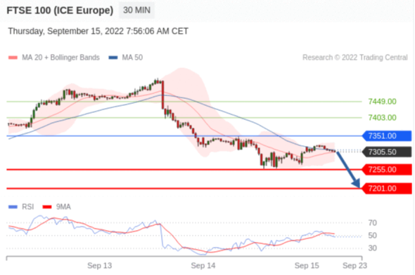 交易策略: 在 7351.00 之下,看跌,目标价位为 7255.00 ,然后为 7201.00 。