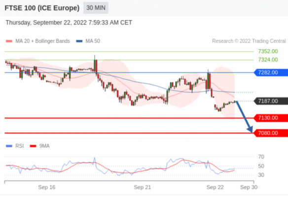 交易策略: 在 7282.00 之下,看跌,目标价位为 7130.00 ,然后为 7080.00 。