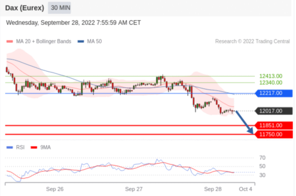 交易策略: 在 12217.00 之下,看跌,目标价位为 11851.00 ,然后为 11750.00 。