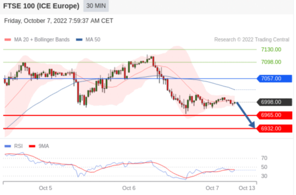 交易策略: 在 7057.00 之下,看跌,目标价位为 6965.00 ,然后为 6932.00 。