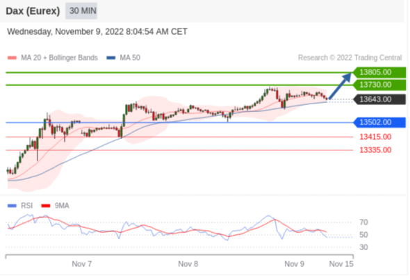 交易策略: 在 13502.00 之上,看涨,目标价位为 13730.00 ,然后为 13805.00 。