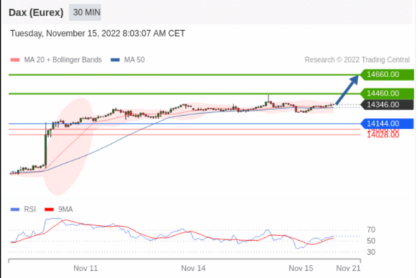 交易策略: 在 14144.00 之上,看涨,目标价位为 14460.00 ,然后为 14660.00 。