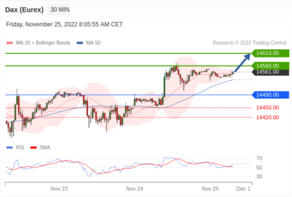 在 14490.00 之上,看涨,目标价位为 14580.00 ,然后为 14619.00 。