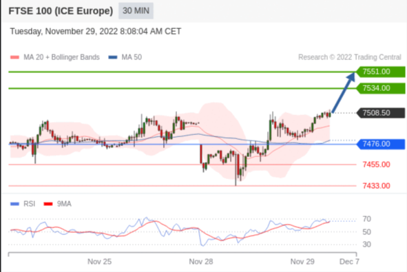 交易策略: 在 7476.00 之上,看涨,目标价位为 7534.00 ,然后为 7551.00 。