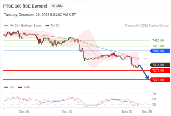交易策略: 在 7392.00 之下,看跌,目标价位为 7277.00 ,然后为 7224.00 。