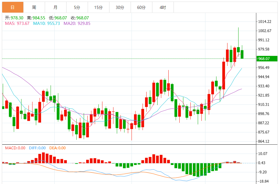铂金价格走势图今日最新铂金行情(2024年4月15日) 今日最新铂金行情:971.65 备注:以上铂金价格仅供参考,请以官方价格为准。