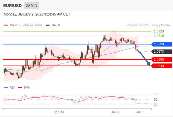 周一(1月2日)亚洲时段,欧元/美元最新报价1.0675,跌0.0015,跌幅0.14%。欧元区2022年12月制造业和服务业I终值将在周一和周三发布,预计将维持在萎缩区间,2022年11月零售额和12月经济信心指数将有助于进一步揭示欧元区经济的健康状况。此外,欧洲最大经济体德国的2022年11月贸易数据和工业订单表现将成为欧洲