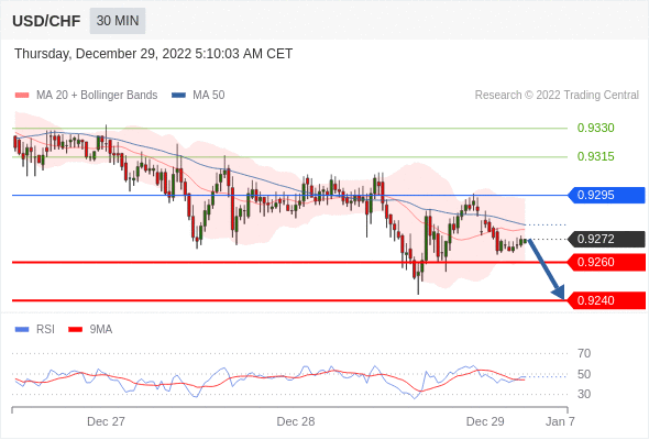 周四(12月29日)盘中,美元/瑞郎暂报0.9273,跌0.0011,跌幅0.12%。 美元/瑞郎汇率今日分析:在0.9295之下,看跌,目标价位为0.9260,然后为0.9240。在0.9295上,看涨,目标价位定在0.9315,然后为0.9330。 技术点评:跌破0.9260位置,将会引发下跌至0.9240。 阻力