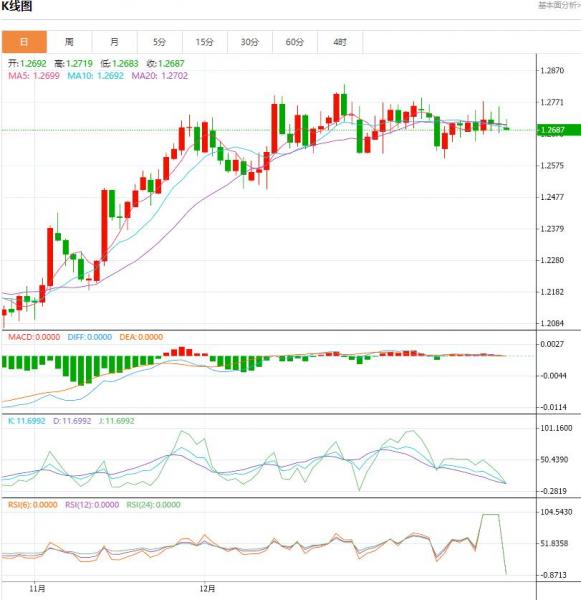 周一盘中,英镑/美元下跌至-0.0014点位,跌幅-0.11%。英镑多头显然会喜欢12月会议后英镑兑美元表现的重演。要实现这一结果,美联储必须比目前预期的更加鸽派,而英国央行必须比预期的更加鹰派。 货币对:英镑/美元 行情分析:汇价高见1.2719,低见1.2683。上一交易日,基本面上看,上周五英镑震荡下行,