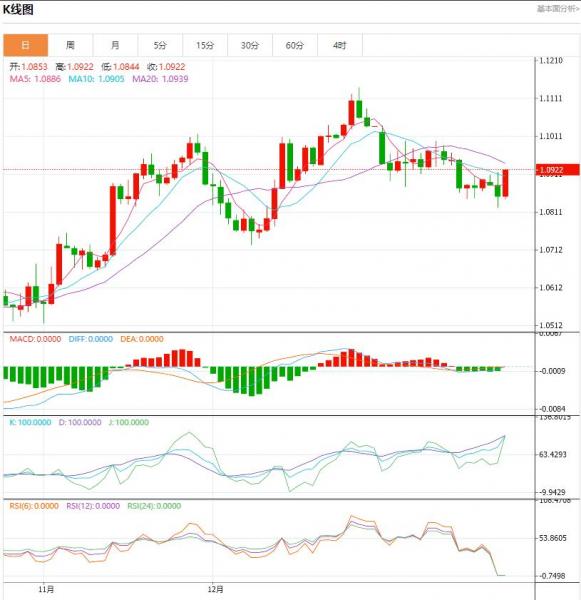 周三盘中,欧元/美元上升至0.0076点位,增幅0.70%。尽管欧元区经济持续低迷,但欧元区通胀下行的速度看起来仍然太慢,因此不能指望很快降息。欧元区I数据显示,1月份欧元区经济活动继续萎缩,尽管速度有所放缓,其中重量级经济体法国和德国拖累了整体经济。 货币对:欧元/美元 行情分析:汇价高见1.092
