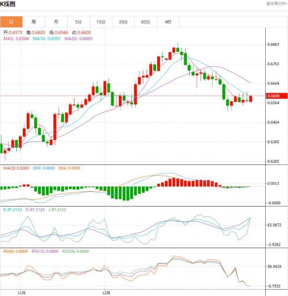 周四盘中,澳元/美元上升至0.0031点位,增幅0.48%。 货币对:澳元/美元 行情分析:汇价高见0.6607,低见0.6566。上一交易日,基本面上看,进入新的一年后,由于交易商推迟了对美联储首次降息的预期时间,美元一直表现坚挺,澳元则受压一路下行,目前勉强守护在0.65水平之上。周三日内,尽管中国宣布降准