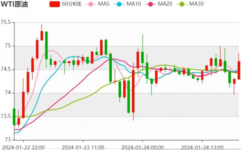 在供应方面,红海地缘紧张局势仍然持续,供应担忧高涨。在需求方面,最近的经济数据显示,在降息预期的支持下,经济活动重新加速。随着形势好转,石油市场将会有更多买家入场,目标价格在80美元左右。 今日原油价格技术分析: 原油昨日可谓是过山车走势,最终收跌,AI数据显示美国上个星期的原油