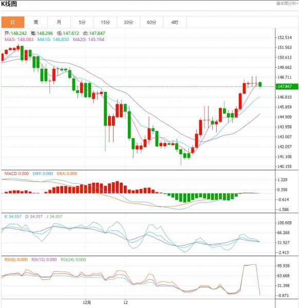 周一盘中,日元/美元下跌至-0.391点位,跌幅-0.29%。日元避险货币的地位正在动遥日本因贸易赤字及长期的低利率政策,日元处在历史最低位,与同样被视作安全货币的瑞郎相比,日元的地位正不断下降。 货币对:日元/美元 行情分析:汇价高见148.800,低见147.675。上一交易日,基本面上看,美国银行本月进行