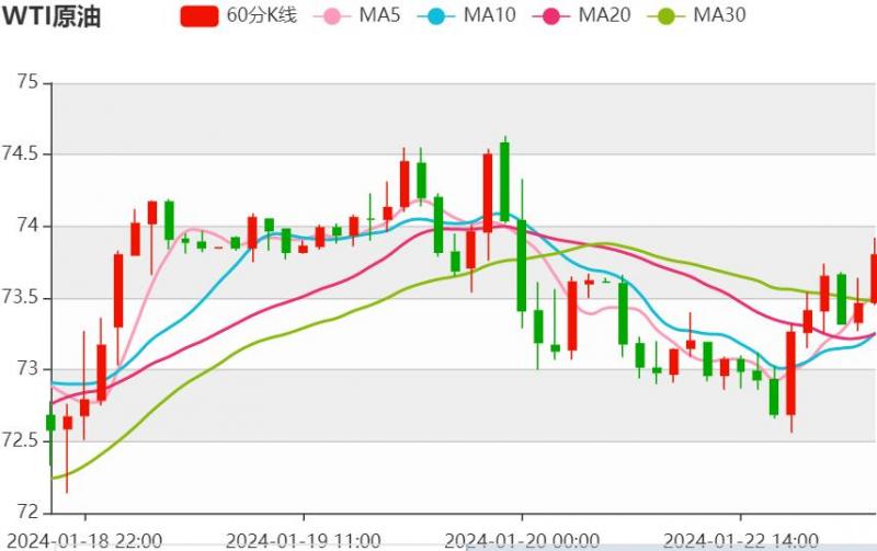 周五(1月19日),原油价格交投于74.20美元每桶附近。昨日行情先涨后跌再上涨,美国能源情报署报告称,截至1月12日当周,原油库存减少250万桶,超出预期;除却战略储备的商业原油库存为2023年10月27日当周以来最低;战略石油储备库存为2023年5月19日当周以来最高。 今日黄金价格技术分析:
