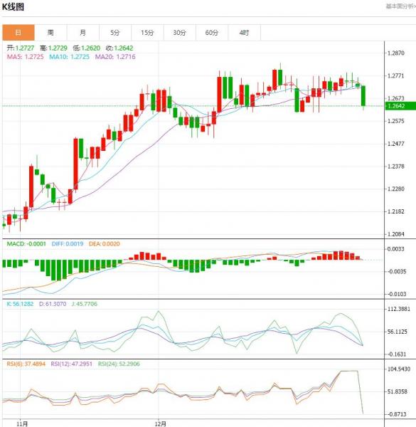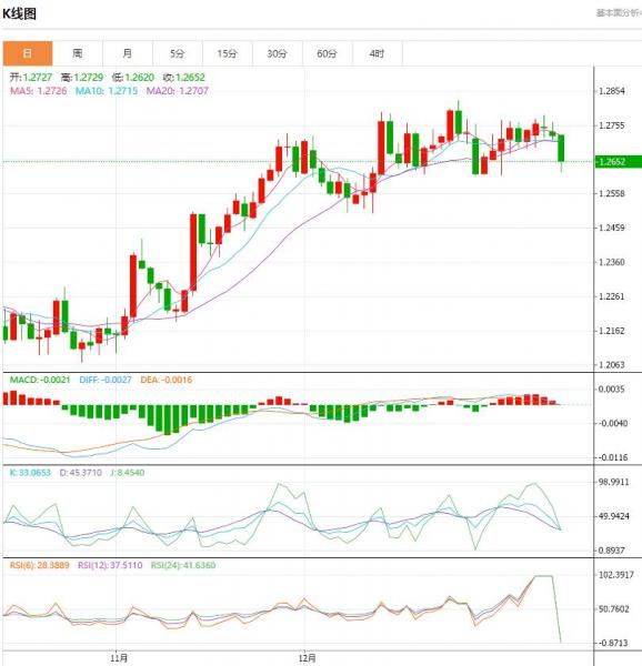 周二盘中,英镑/美元下跌至-0.0084点位,跌幅-0.67%。随着英国工资增长继续降温,英镑在数据公布后延续了跌势。英国央行一直将工资增长列为通胀担忧的一个领域。这些数据将支持这样一种观点,即英国央行在控制通胀压力方面可能已经做得足够了。 货币对:英镑/美元 行情分析:汇价高见1.2729,低见1.262。
