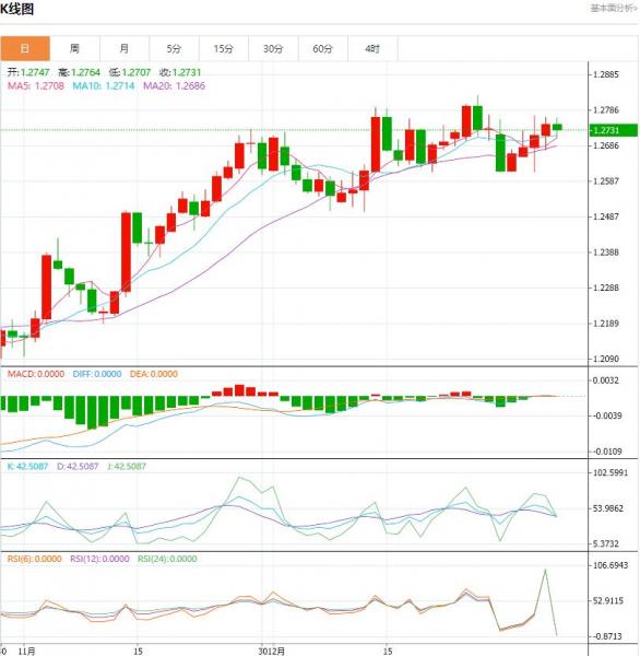 周二盘中,英镑/美元下跌至-0.0015点位,跌幅-0.12%。最近英国数据没有什么值得称道的,但英镑兑美元看起来并没有捉襟见肘,如果欧元/美元在这里持稳,英镑可能会提前向1.30美元发起冲击。 货币对:英镑/美元 行情分析:汇价高见1.2764,低见1.2707。上一交易日,基本面上看,英镑昨日震荡上行