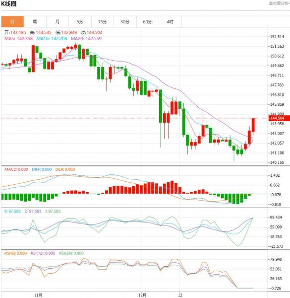周四盘中,英镑/美元上升至0.0030点位,增幅0.24%。英国的净抵押贷款在短期内可能会保持疲软,但应该会在春季开始复苏,届时抵押贷款许可的复苏将从利率下降中获得动力。11月份房地产市场的疲软拖累了货币供应量的增长,抵押贷款保持不变,而10月份则出现了1亿英镑的净偿还。 货币对:英镑/美元