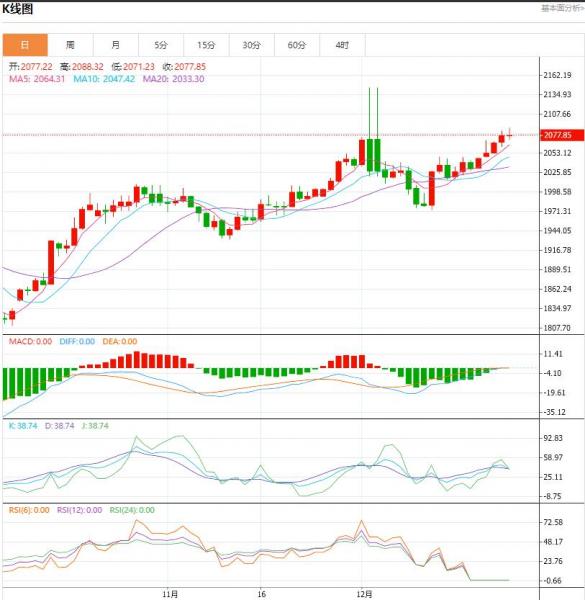 周四(12月28日),美国劳工部最新发布的数据显示,美国至12月23日当周初请失业金人数录得21.8万人,较上月小幅增加。这些(就业)数字在假期前后往往不稳定,四周移动平均线上周变动不大,为21.2万,为去年10月底以来最低。四周移动平均线能更清晰地反映就业趋势。 今日黄金价格技术分析: