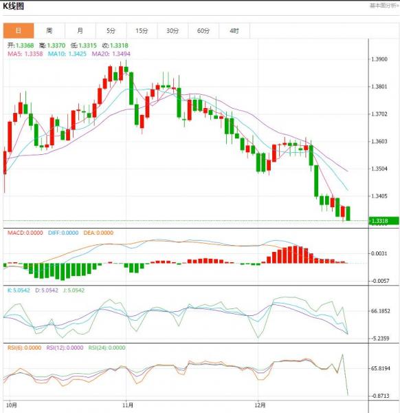 周四盘中,英镑/美元上升至0.0045点位,增幅0.36%。英国11月消费者价格指数(CI)同比上涨3.9%,较10月的4.6%大幅下降。11月份消费者价格指数的大幅下降,加深了人们对英国央行提前降息的预期。由于英镑在通胀急剧下降后失去了长期限制性政策立场的竞争优势,英镑/美元货币对面临更多下行风险。 货
