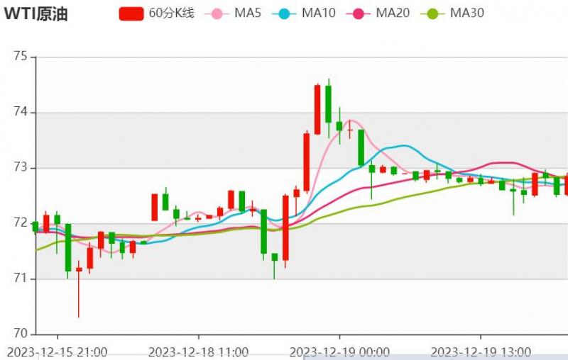 原油总库存出现了自第二季度以来相对于季节平均水平的最大连续库存消耗。2024年第一季度欧佩克+的减产协议如果能够很好的执行,原油价格反弹可能将会出现。 今日原油价格技术分析: 原油昨日打破周初强势台阶上升格局,尾盘收在低位。截至12月8日的一周,美国原油库存意外增加约290万桶,出乎人们