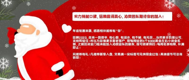实力铸就口碑,信赖赢得真心,沁雯团队期待你的加入! 年底钜惠来袭,感恩相伴推荐有“你”: 回顾2020,走来一路艰辛,有心酸,有泪水,有不解,有无奈……当然更多的是认可,支持和信任!所以为回馈更多新老客户,现每周给到5个3000美金左右小资金名额,之