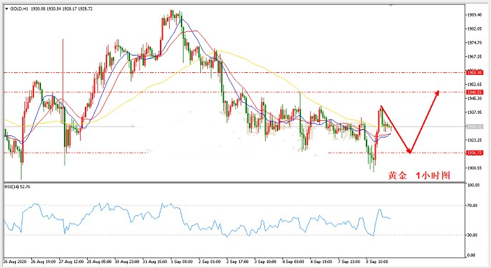 【黄金行情回顾】 周三(9月9日)亚市午后,现货黄金价格走势上演“过山车”行情,金价回升至1934.52美元后快速跳水,截止发稿北京时间14:00现报1927.65美元/盎司。针对黄金前景,货币策略师Ilyaivak表示,“眼下1900美元/盎司支撑对黄金市场而言是非常重要的。” 【黄金行情走势预测】 日线图上看,黄金仍维持近期的