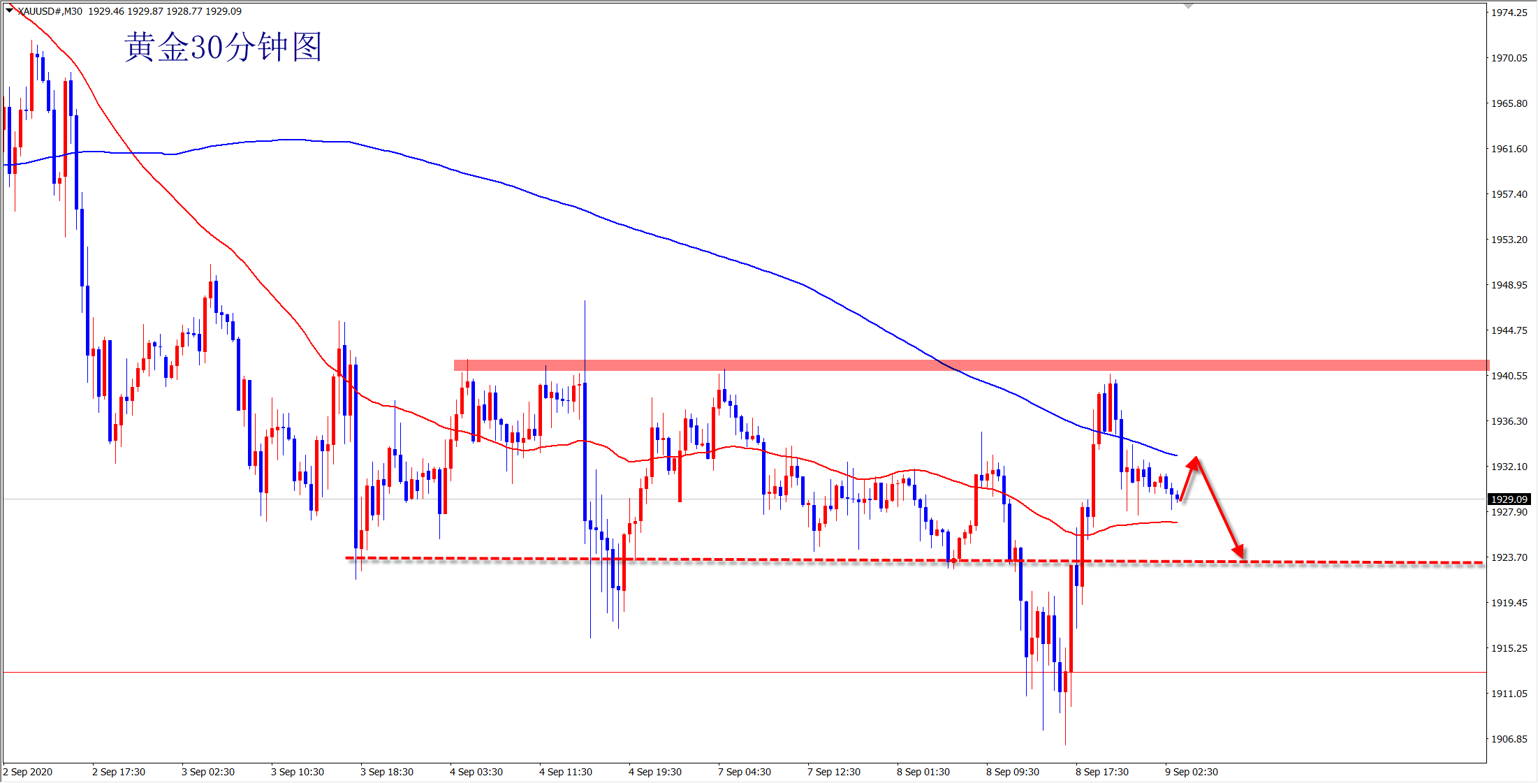 【黄金行情回顾】 黄金昨日1932现价空,1920反弹空,最终行情跌至1910下方!全部止盈!跟随趋势,无惧震荡,今日行情亚盘承压1933,欧盘空单直接进场! 【交易策略分析】 黄金昨日承压1933压力后下跌,虽然中间有刺穿形态,但是最终的未能有效突破进而大跌!美盘及凌晨时间段黄金大幅深V拉升,最高触及1941位置,但还
