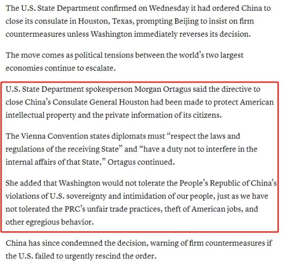 周三(7月22日)美市盘中,市场避险情绪升温,美元指数延续跌势,现货黄金受到追捧。此前中国外交部表示,美国在7月21日通知中国在72小时内关闭驻休斯敦总领馆。 中国外交部发言人汪文斌谴责了这一举动。目前世界上最大的两个经济体之间的紧张关系正在加剧。他警告说,如果美国不改变其决定,将采取坚决的反制