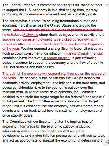 美联储周三(7月29日)宣布维持利率不变,与此同时,受新冠病毒困扰的美国经济前景不温不火。 美联储将基准隔夜拆借利率维持在接近零的水平,符合市场的普遍预期。自3月15日疫情爆发初期以来,美联储一直将利率维持在这一水平。 除了维持低利率外,制定货币政策的联邦公开市场委员会(FOC)表示,将继续购买债券,以及一