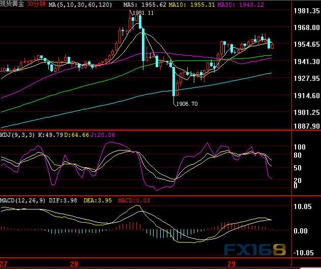 周三(7月29日)亚市早盘,现货黄金短线突然急跌近10美元,并一度失守1950美元/盎司关口。事实上,在昨日亚市早盘创下历史新高之后,金价波动性一直较高。 周二亚市早盘,现货黄金突破1980美元/盎司,最高一度触及1981.11美元/盎司,再创历史新高。 周二亚市盘中金价曾出现跳水一幕,金价在短短几分钟内一度下跌至1940美