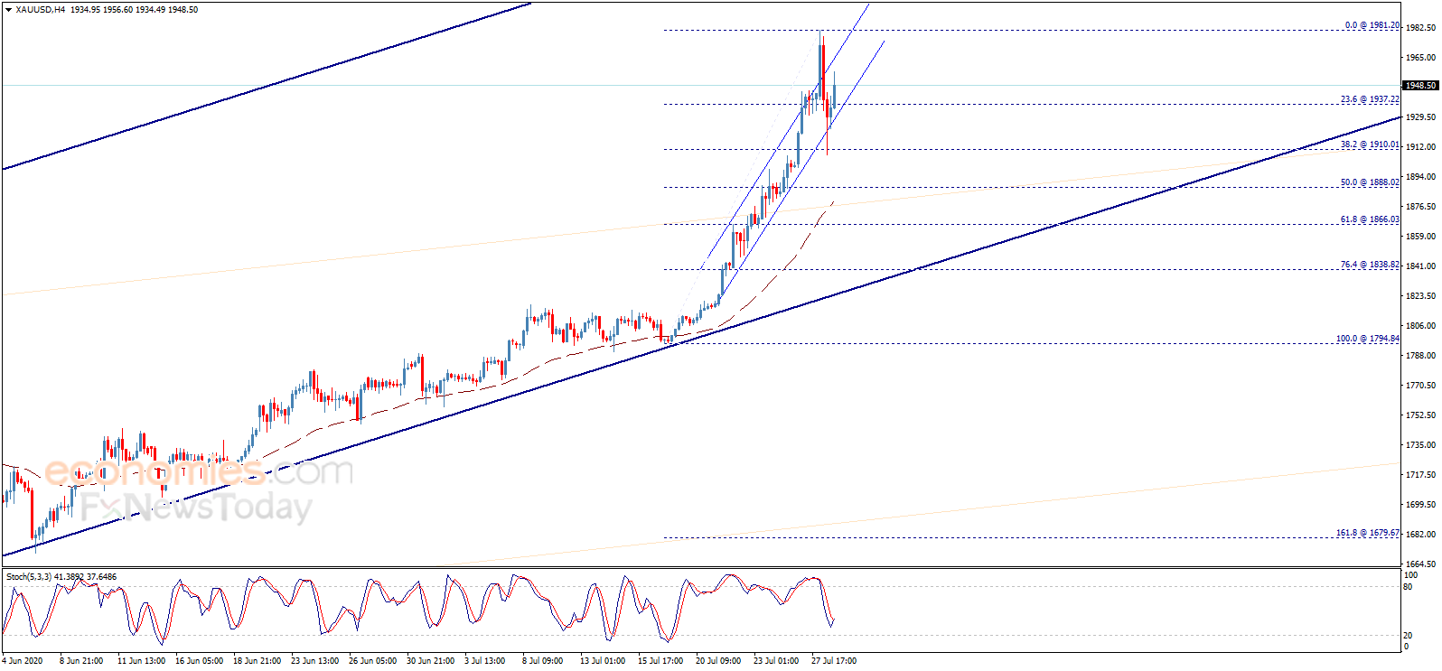 周三(7月29日)亚市早盘,现货黄金略微走高,金价现报1958美元/盎司附近。知名财经网站cooi.co周三最新撰文,对金价后市走势进行分析。 周二亚市早盘,现货黄金突破1980美元/盎司,最高一度触及1981.11美元/盎司,再创历史新高。周二亚市盘中金价曾出现跳水一幕,金价在短短几分钟内一度下跌至1940美元/盎司下方,