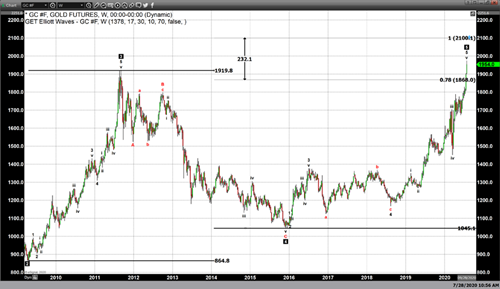 Kitco技术分析师GaryWagr周二(7月28日)撰文指出,如果期货市场能反映出交易员对黄金走势的看法,那么2000美元的金价可能比我们想象的要接近得多。 包括Wagr在内的许多分析师,此前预测金价将达到1800美元,金价突破1800美元后立即达到1900美元。但就黄金将多快升至这些价格点而言,我们错失了良机。 事实是,自