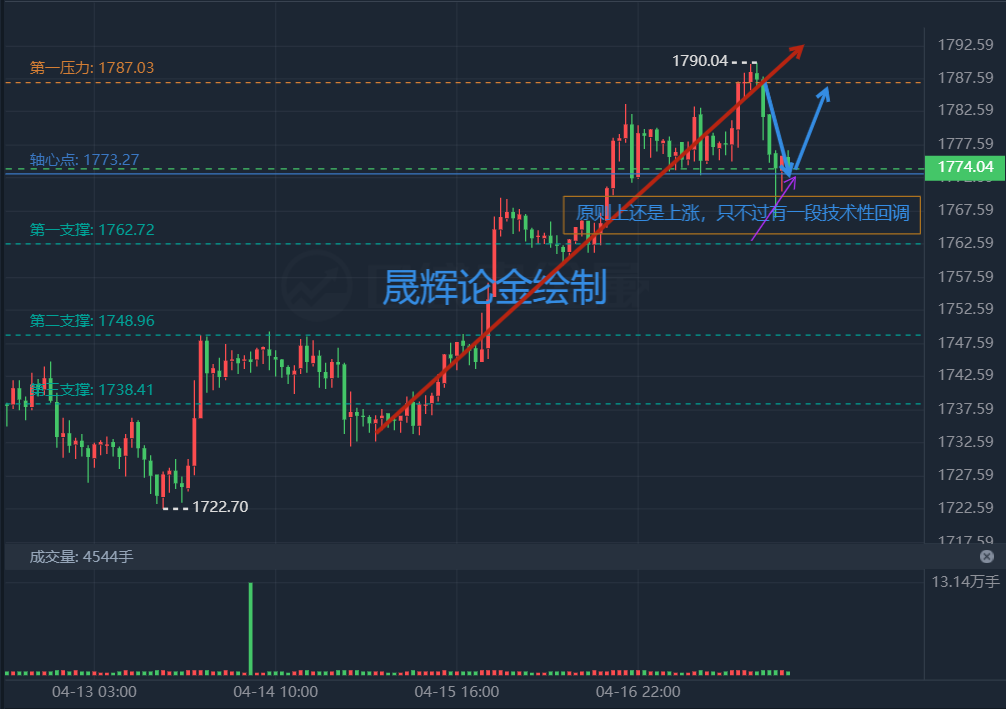4月20日金价走高,现货黄金一度升上1780关口,较日低上扬近17美元,美债收益率回落令金价得到支撑;随着美股两连跌、一些国家新冠病例激增,黄金的避险需求也有所增长;但因美元大幅反弹,金价未能推动其收复昨日的损失,尾盘回落至1778美元附近。 昨日晟辉也是一直坚持强调为什么