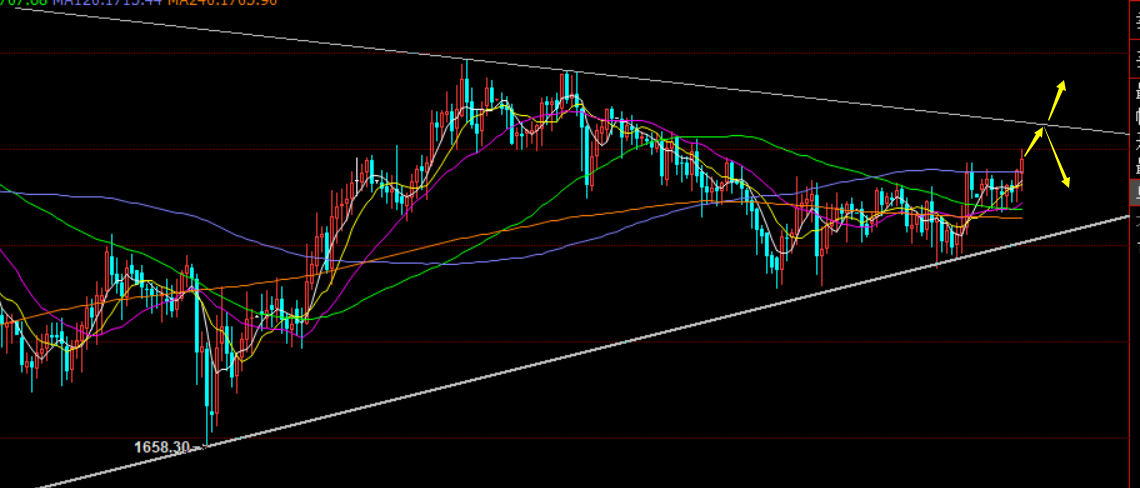 郑氏点银:金银油单边上涨延续,刷刷破新高 黄金上周四晚间价格突破了关键的三角整理上轨压力1718-1720,这一突破给黄金带来了多头动能,然后再次突破1738前期双顶压制,启动了强势单边上涨,这两天一度涨至1764高点,对于今日以及后市的看法如下:第一,月线级别,长线一直以来是多头格局不变,这
