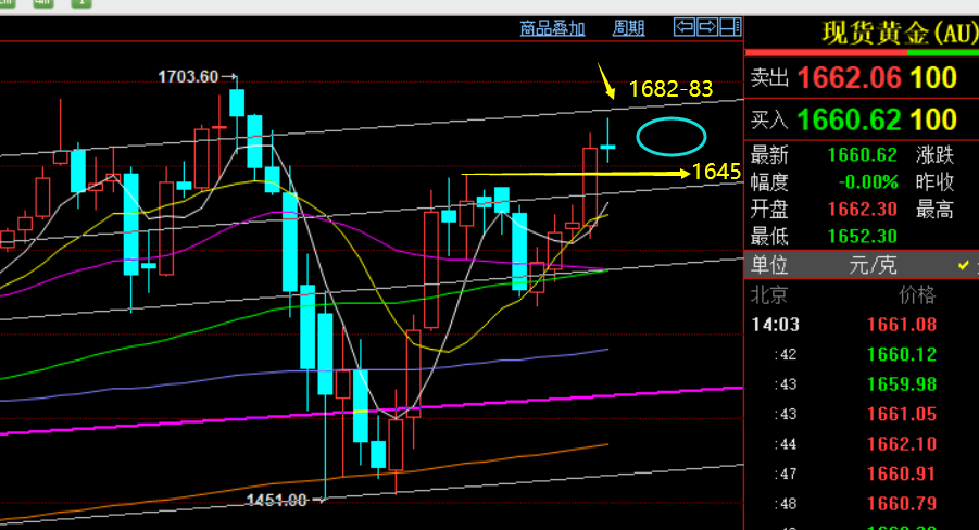 郑氏点银:黄金今日1645上整理,原油区间震荡等会议 昨日黄金价格迎来逼空一路上涨,远超乎市场预期,接连突破两个关键压制点,1631短期通道压力以及1645日线前双顶压制,一路慢涨到了今日早间1670上方,全数剿灭了市场空头持仓,包括笔者昨日白盘布局做空也失败扫损,日线收到大阳,短期内黄金还维持偏