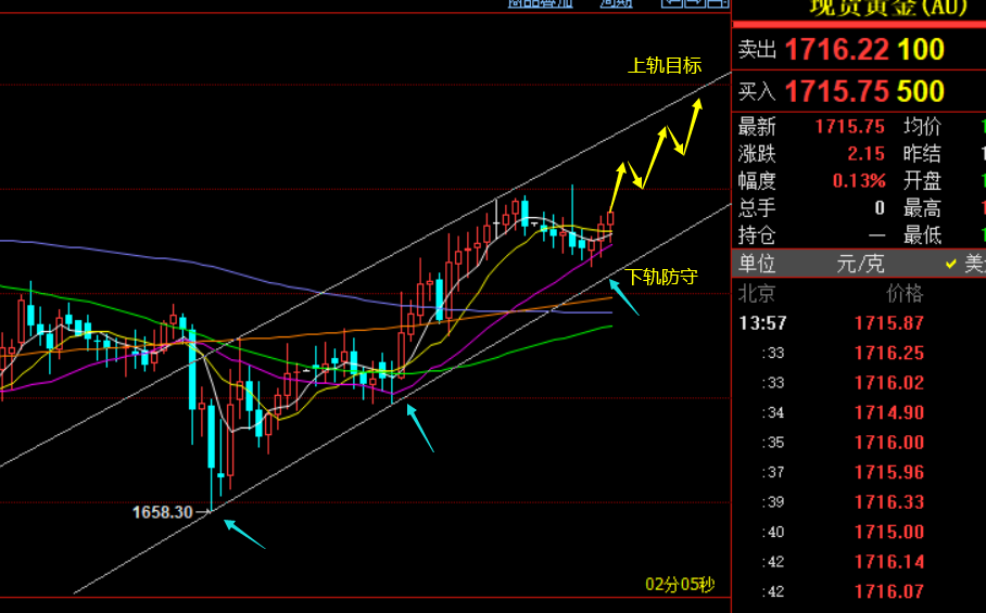 郑氏点银:黄金下周延续下跌调整,原油弱势等拐点 本周黄金周初维持逼空强势上涨,周二触及2012年12月后以来的新高1747一线,随后周三和周四维持日线5均线上偏强整理,周五来了一波杀跌下滑,暂停了4月1日底部1567起涨的逼空强势走势,也就说出现了变盘拐点周期,下周会继续延续下跌修正调整,后市解读下具体