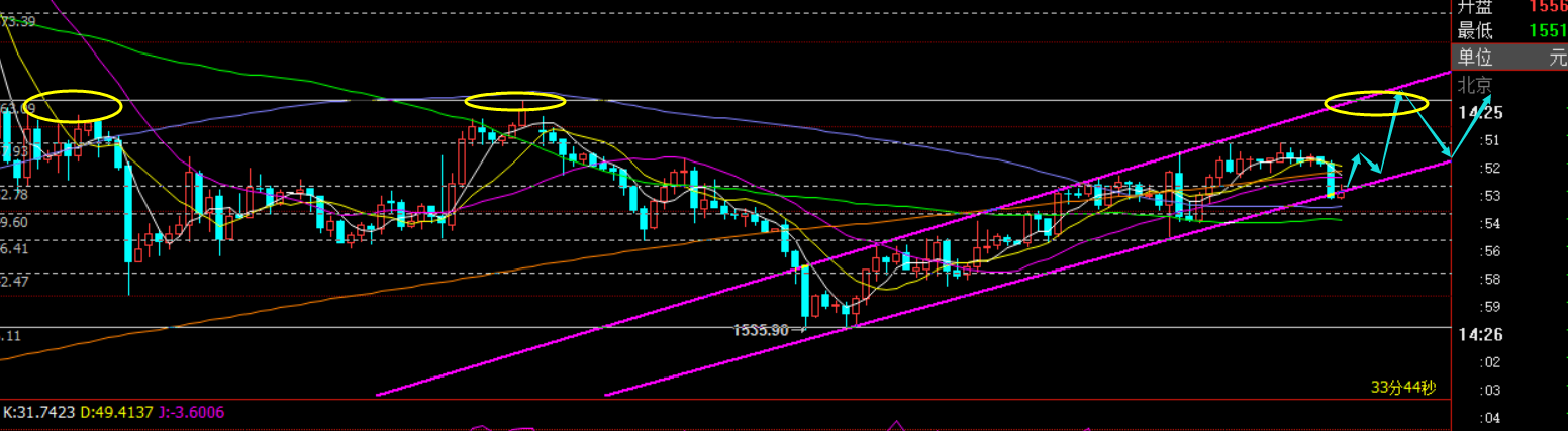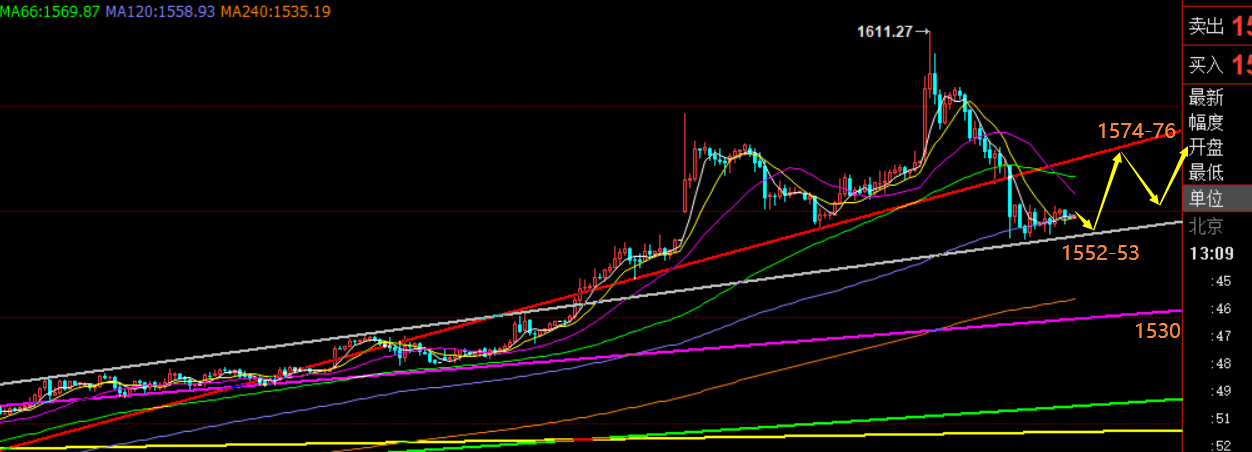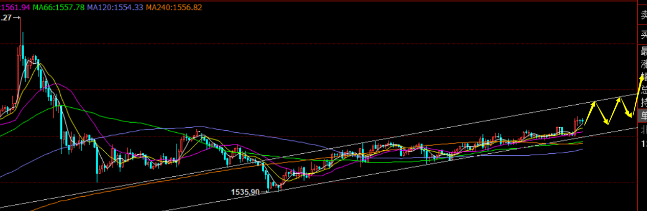 郑氏点银:黄金1556上逢低接着多,原油58.7低多 具体的思路昨晚周评已经明确了几点,可以去查看,对于今日做一下简单的剖析:第一,周线级别延续5均线会保持偏强多头上涨,大方向不会改变,短期的冲高回落只是调整周期,目前5均线已经上移1546-47,本周以此作为支撑节点维持上方看涨运行;第二,日