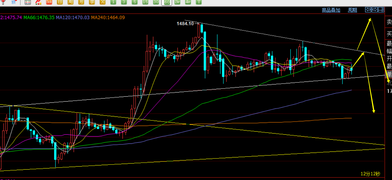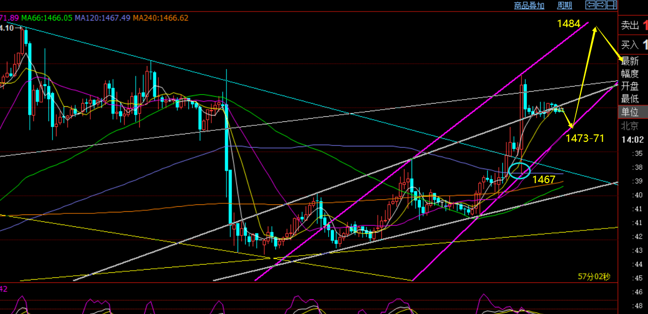 郑氏点银:黄金1462逢低多,原油60上空 昨日黄金可谓是近期波动速度最快的一次,幅度也较大,从1472先震荡上涨至1487,再急跌瀑布至1465后处于底部整理,只要近期一直关注笔者解析思路的朋友,相信昨日的走势其实不难,1486-87是强调的日线趋势压力,触及做空很正常,白天依托1472-73小周期通道支撑
