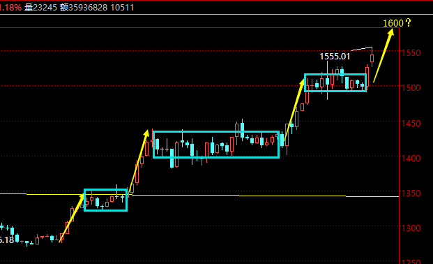 郑氏点银:金银单边强势再度来袭,原油弱势空延续 金价再次避险单边强拉,市场氛围瞬间高潮,回归历史,近期黄金从底部1275美元第一轮单边算起,已经经历了三轮避险连阳的上涨,而这次从上周五1492再次起航,按照单边持续拉升的幅度,每次基本100美金会有,那么这次哪怕强势到1600美元关口都不足
