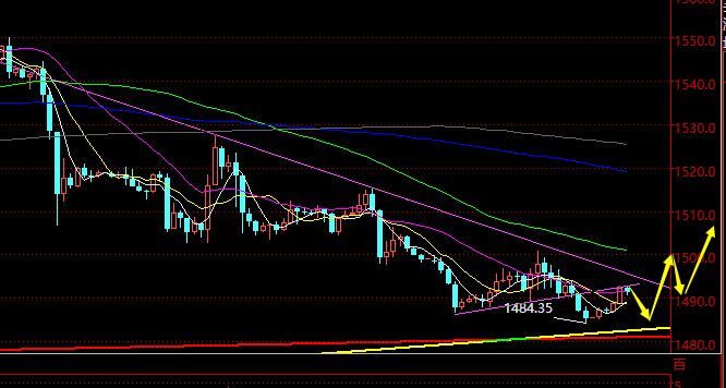 郑氏点银:金银随时准备反攻,原油上涨面临终结 昨日的走法和前日一样,都是白盘震荡反弹,美盘半夜打破创新低,日线产生四连阴,形态上看似比较弱势,但周评指出的关键中线多单布局区域1485-1476已然逼近,处于日线上行通道的下轨支撑,同时靠近周线关键10均线,势必有一波较大的反抽动作,可能
