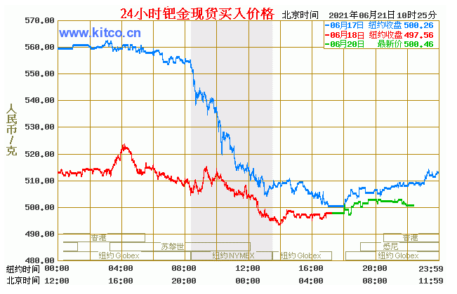 钯金价格走势图今日最新钯金行情(2021年6月21日) 今日最新钯金行情:500.46 备注:以上钯金价格仅供参考,请以官方价格为准。