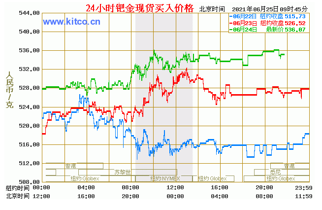 钯金价格走势图今日最新钯金行情(2021年6月25日) 今日最新钯金行情:536.07 备注:以上钯金价格仅供参考,请以官方价格为准。