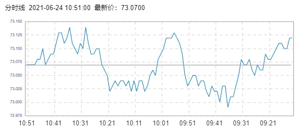 WTI原油价格实时(2021年6月24日) 名称 最新价 涨跌 涨跌幅% 开盘价 昨收价 最高价 最低价 WTI 73.07
