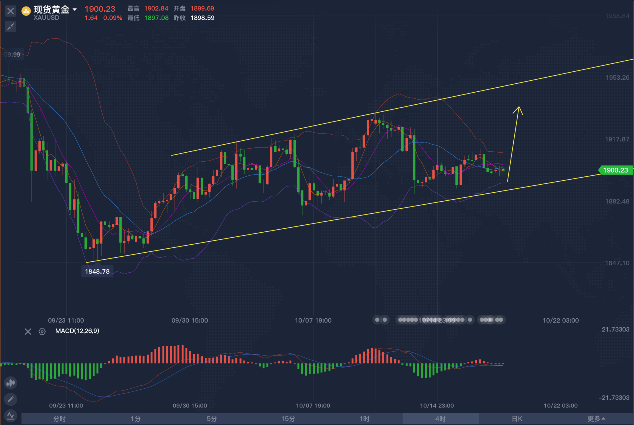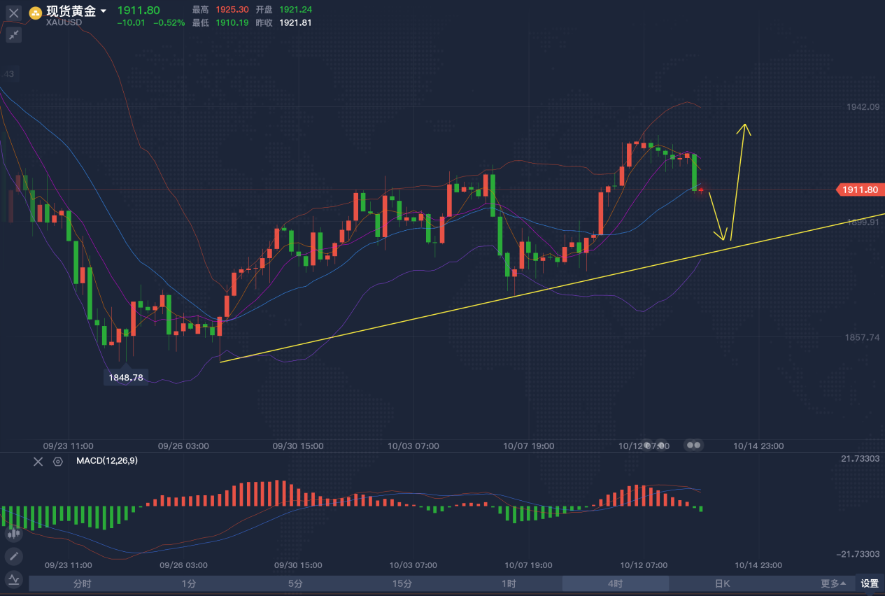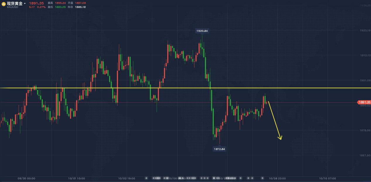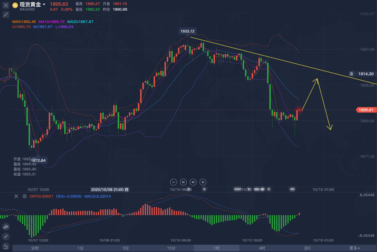 鈥A533周一,金价延续了一波向上的反弹,向上第三次冲击1913美元/盎司,不过这一次同样也是没有冲过,受到美元指数的反弹,美盘时段金价自1918这个高点的位置持续回落,一直到早上最低点1894美元。 这一次,基本上还是没有打破原有的震荡行情,在整个行情的交易当中,继续维持着箱体震荡,美元虽然反弹