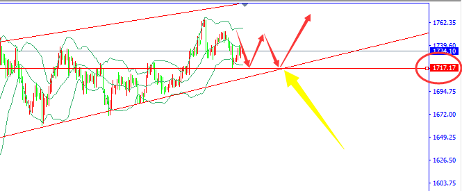 目前手上有空单的朋友需要注意了,技术面与消息面都不去支持黄金下跌,特别是位子超级低的,速速找机会离场,如果不知道对行情如何把握,那么你可以联系孙策老师团队 sclc415寻求帮助,下周实际操作大家需要注意两点,依托1717上方看多,回踩至1720-1724可做短线多单,目标看1734-1738-1743,止损1717即可。